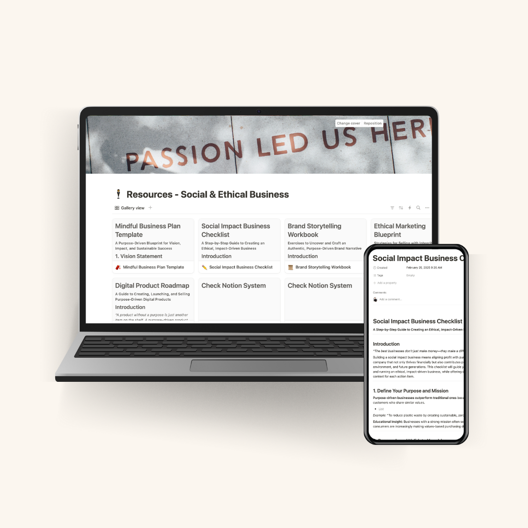 Mindful Business Plan Template | Social Impact Business Checklist | Brand Storytelling Workbook | Ethical Marketing Blueprint | Digital Product Roadmap | Time & Energy Management Planner | Content Creation Toolkit