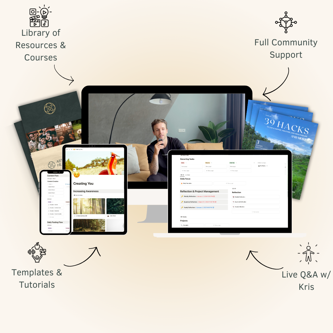Your membership gives you full access to all courses across the 5 pillars, weekly live Q&A sessions, quizzes to reinforce learning, and a supportive community platform. You’ll also get a free 30-minute chat with Kris to help you choose the best pillar(s) for your journey.